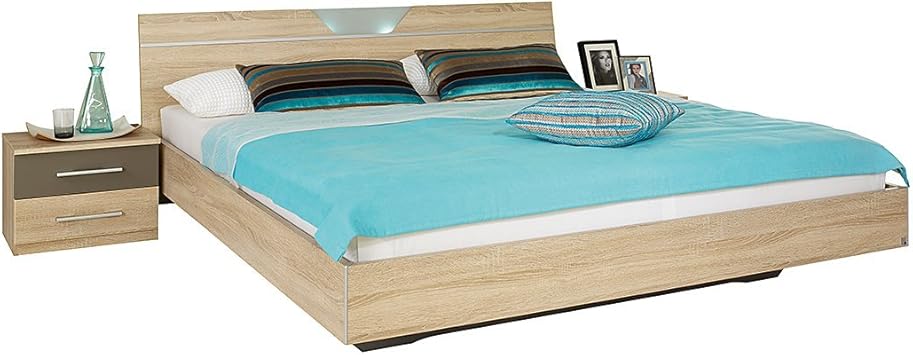 Bett rasa sonoma eiche s gerau wei mit beleuchtung 160.
